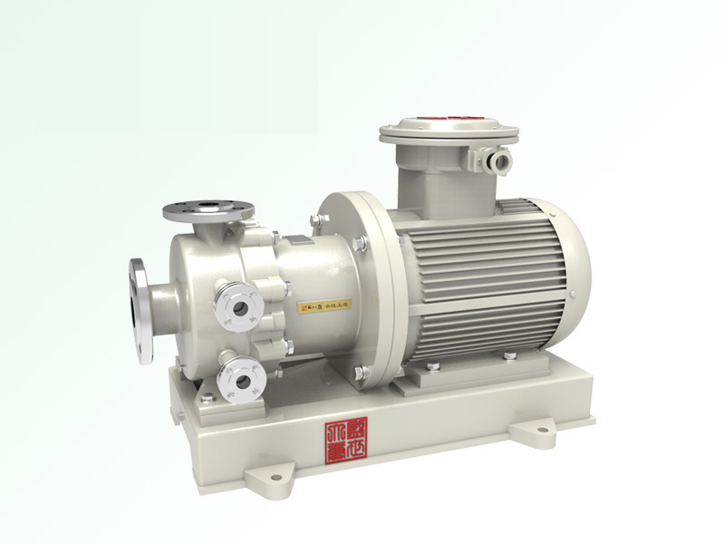 无泄漏磁力高(保)温离心泵(简称:磁力高(保)温泵)是应用现代磁力学原理,利用永磁体的磁力传动实现扭矩的无接触传递的一种新型泵,就是电机带动外转子(即外磁钢)总成旋转时,通过磁场的作用磁力线穿过隔离套带动内转子(即内磁钢)总成和叶轮同步旋转,由于介质封闭在静止的隔离套内,从而达到无泄漏抽送介质的目的。泵体、泵盖设计了双层冷却(保温)装置,磁力高温泵可使用水、氮气进行可使用水、氮气等对泵体内介质冷却,确保进入泵内的介质保持在较低的温度,磁力保温泵加入蒸气对泵体内介质保温,保证了介质在输送过程中不会冷凝、结晶、气化,****解决了机械传动泵的轴封泄漏、冷凝、结晶、气化,****解决了机械传动泵的轴封泄漏、冷高温、气化,而设计的全密封、无泄漏、无污染、耐高温、保温、高效节能的新型工业用泵。性能达到国际标准、可替代价格昂贵进口的化工泵。