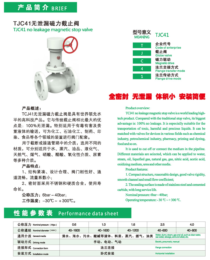 TJC41无泄漏磁力截止阀