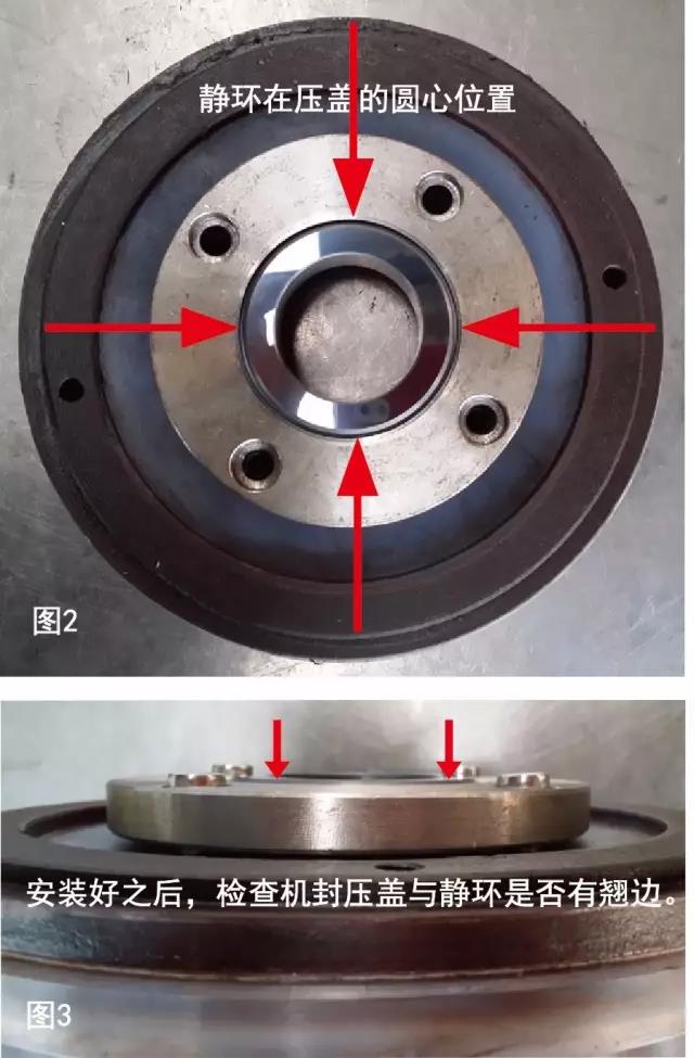 2、机封压盖4个螺丝必须对角上紧,否则会造成静环不水平,影响后期使用效果(如图3)。